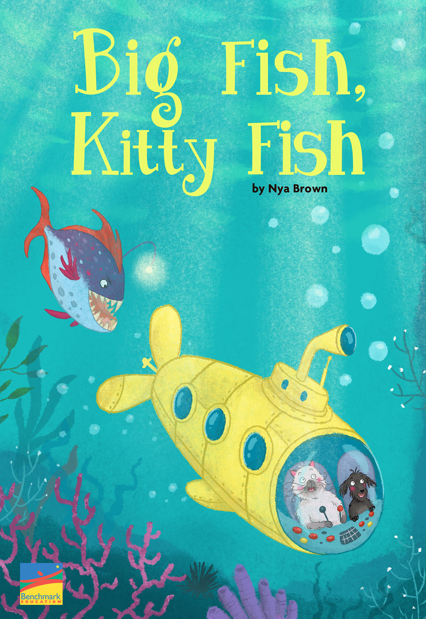 Big Fish Kitty Fish is a story about Mr. Kitty and his friend dog Binky. They were so bored with their regular food-canned fish. Once they decided to build a submarine that allowed them to travel to the bottom of the ocean. They thought they could catch a perfect fish for dinner! When they got into the submarine and reached the bottom of the ocean they saw a BIG fish which started to chase them. It looked like they were a perfect meal for this monster! Mr. Kitty and Binky decided to race home. Finally, they happily enjoyed a nice big bowl of canned fish.
